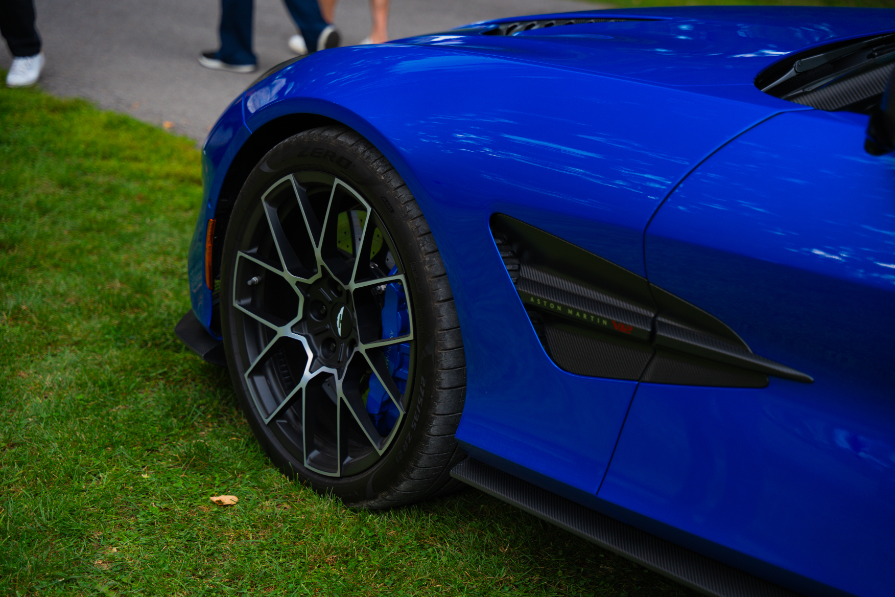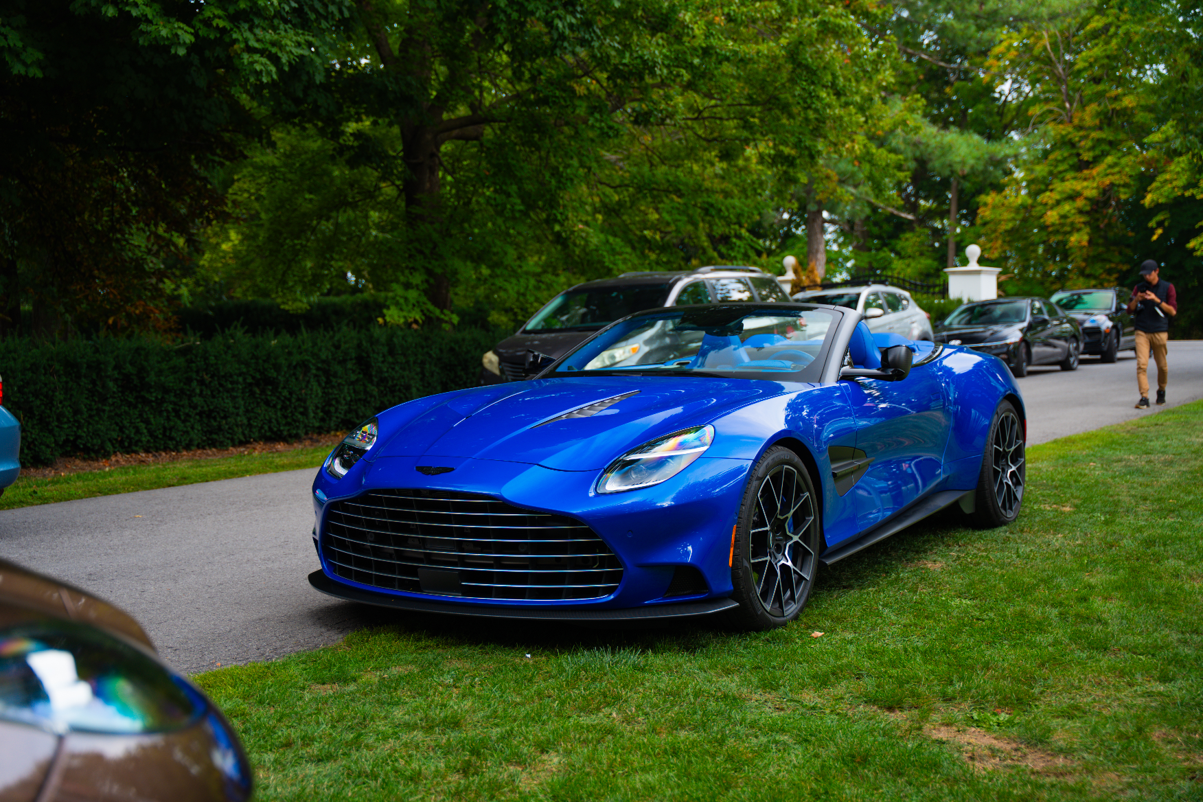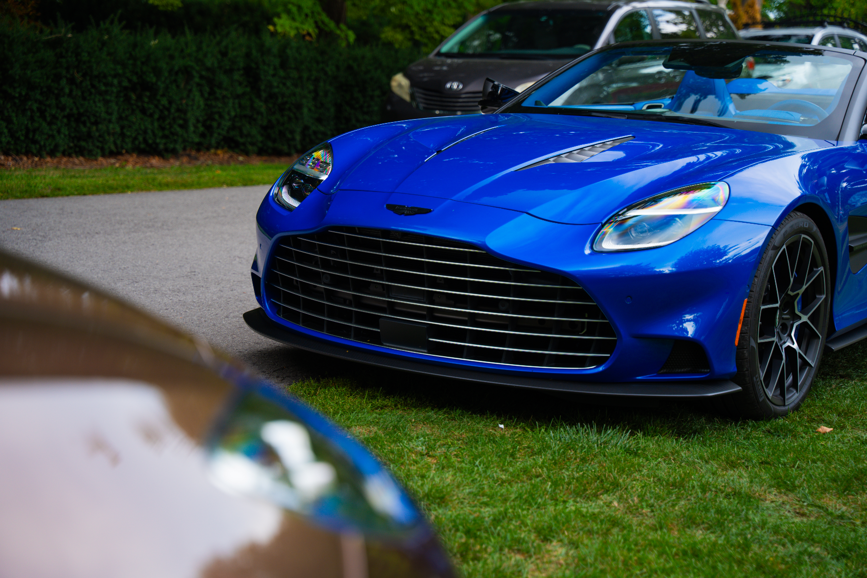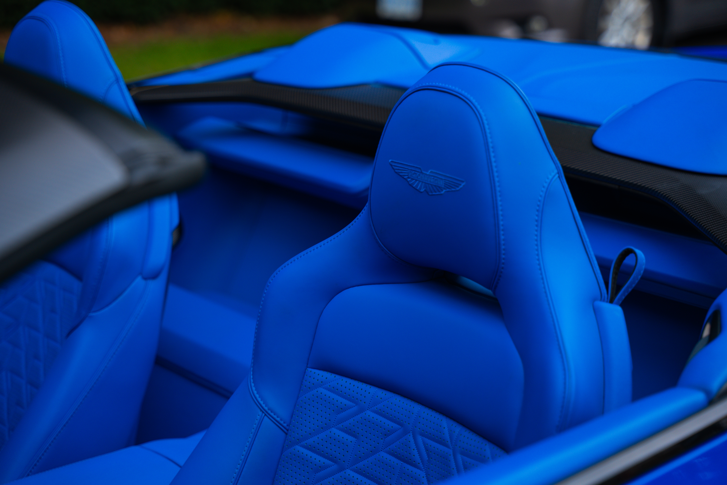 This vibrant blue Vanquish Volante commands attention instantly—its long hood, deep grille, and sculpted lines catching the light as it sits against the greenery. The open cabin adds a sense of freedom and cinematic motion, even at rest, while the car’s bold color and refined details elevate it beyond a traditional grand tourer. On the page, the visuals highlight the Volante as a piece of rolling craftsmanship: confident, expressive, and designed to turn everyday roads into a luxury experience.